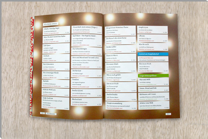 The season’s magazine was titled »Ich und Ich« (›me and me‹). The magazine is comprised of eight chapters that each have their individual design. The magazine has circa 160 pages.
