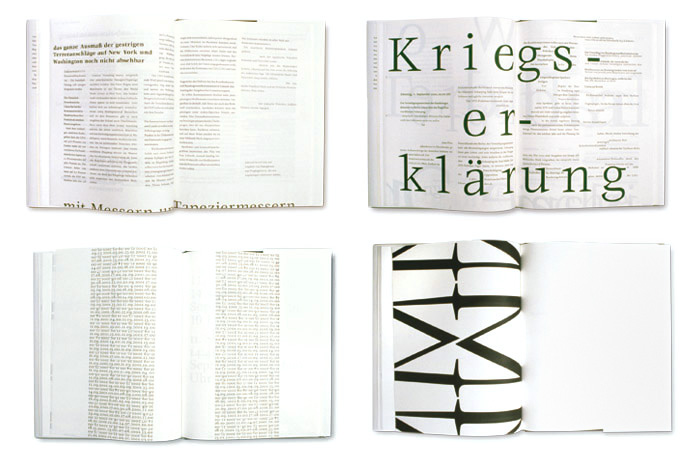 Nothing was the same after 9/11. This book offers a typographical interpretation of all news on 9/11 broadcast on Deutschlandfunk (German national news radio).